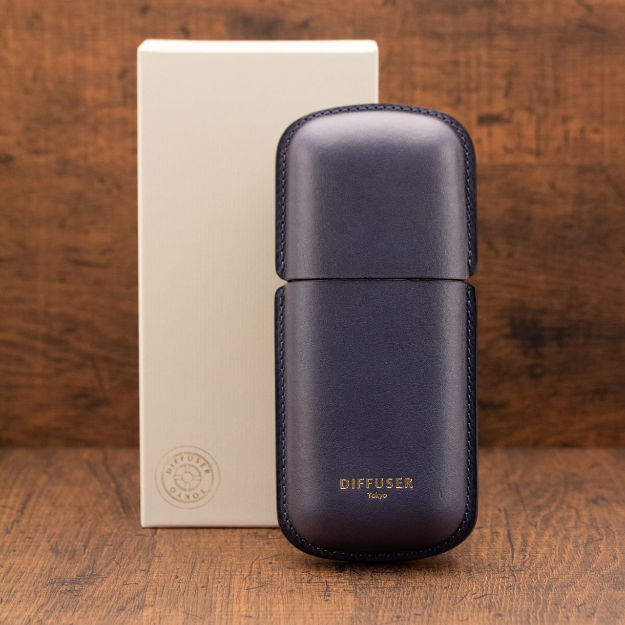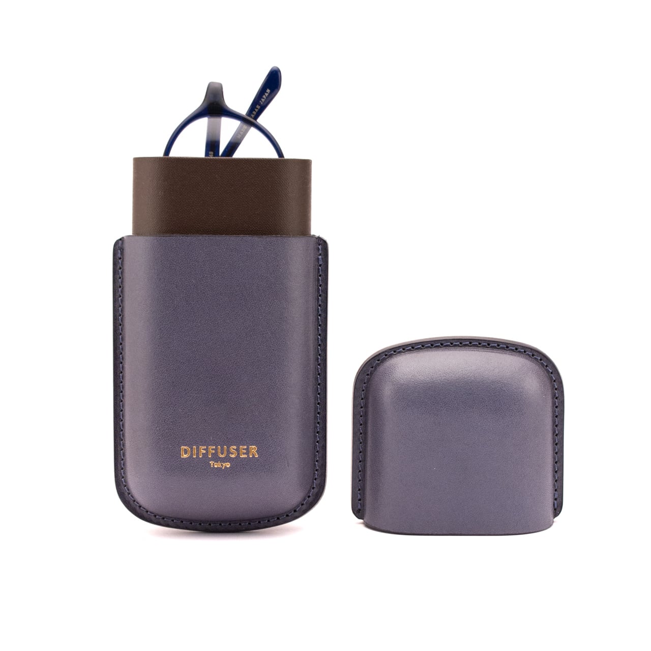 DIFFUSER WETFORMING LEATHER EYEWEAR CASE Blue & Dark Brown