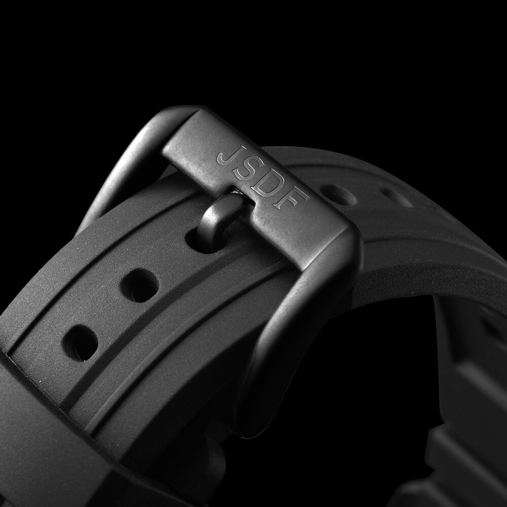 ケース:SUS316Lステンレス、マットブラックPVD加工、スクリューバックバンドラバーストラップダイアル空自公式迷彩(グレー)